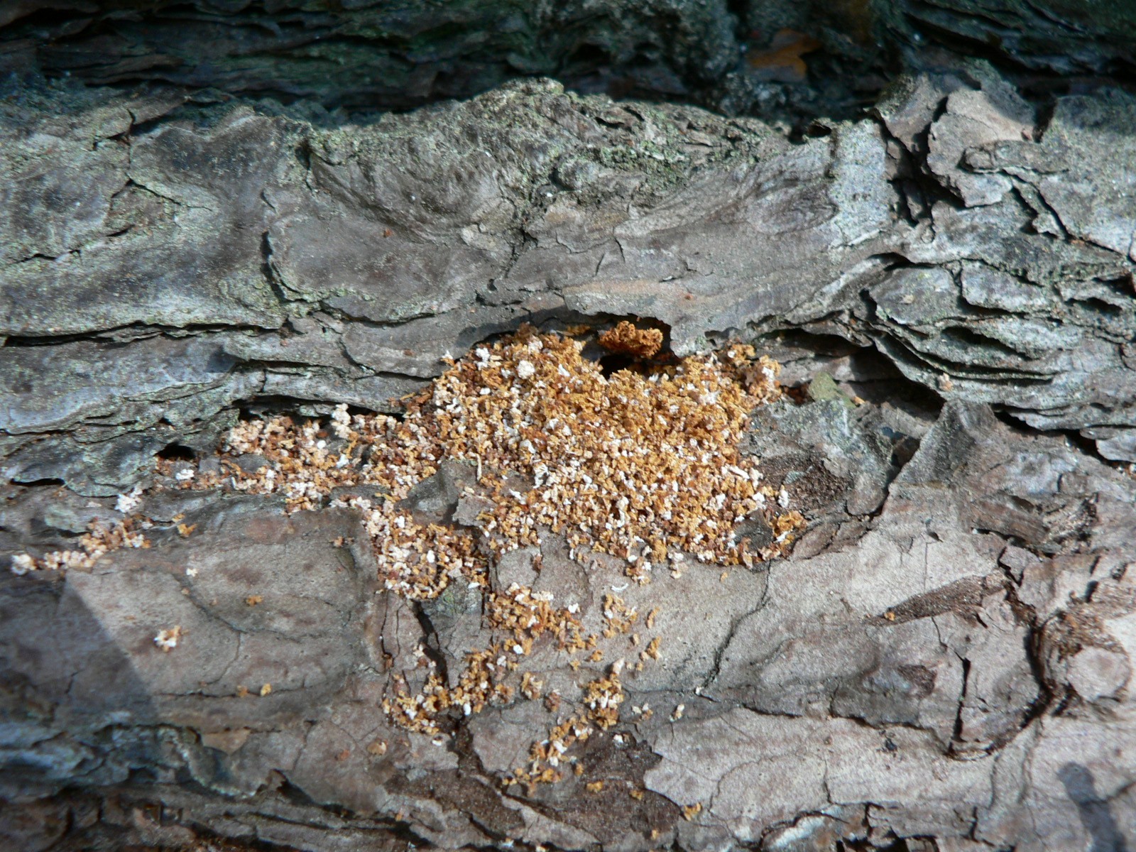 Zwölfzähnige Kiefernborkenkäfer Ausbohrloch mit Spänen - © Katrin Möller